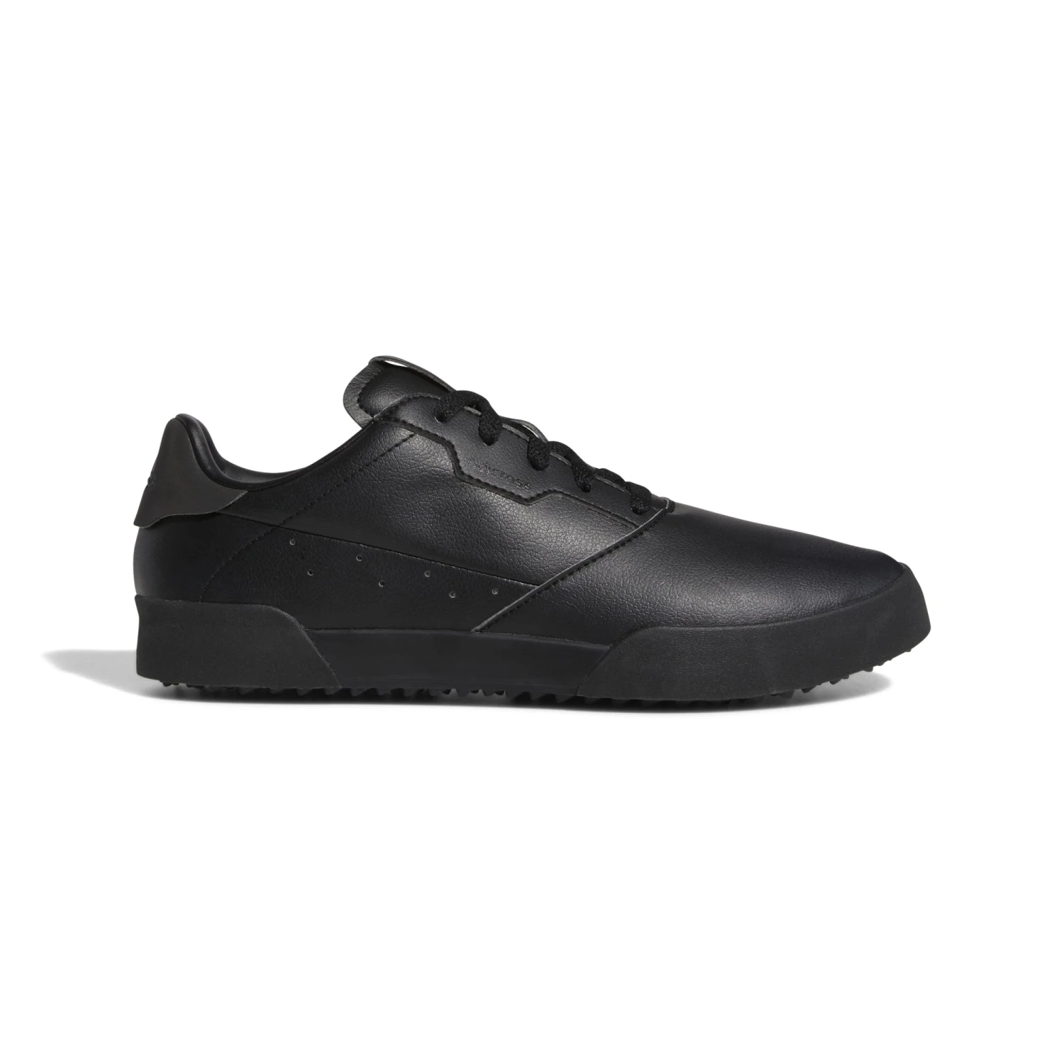adidas Adicross Retro Golf Shoes -&Black The adidas Adicross Retro Golf Shoes allow golfers to wear a pair of golf trainers that have a classic throwback style but uses modern technology to create a brilliant golf shoe for both on and off of the golf course.& These mens golf shoes have been designed to look like a classic pair of court shoes that look stylish but offer brilliant functionality with the enhanced midsole cushioning that provides excellent support so that your feet are still comfortable after a full 18 holes of golf.& As a pair of spikeless golf shoes these trainers use an Adiwear outsole that offers high wear and tear durability which has been paired with a Traxion outsole to deliver a brilliant combination of performance and stability in these adidas mens trainers. adidas has used a water-resistant upper on this golf shoe so that your feet remain dry while playing on a damp fairway. This upper has been made using vegan materials that include at least 25% recycled materials. Features Regular fit Lace closure Water-resistant vegan upper Microfibre lining Slow resilient sockliner Enhanced midsole cushioning Spikeless Adiwear outsole featuring fish-scale Traxion Vegan alternative: At least 25% recycled content