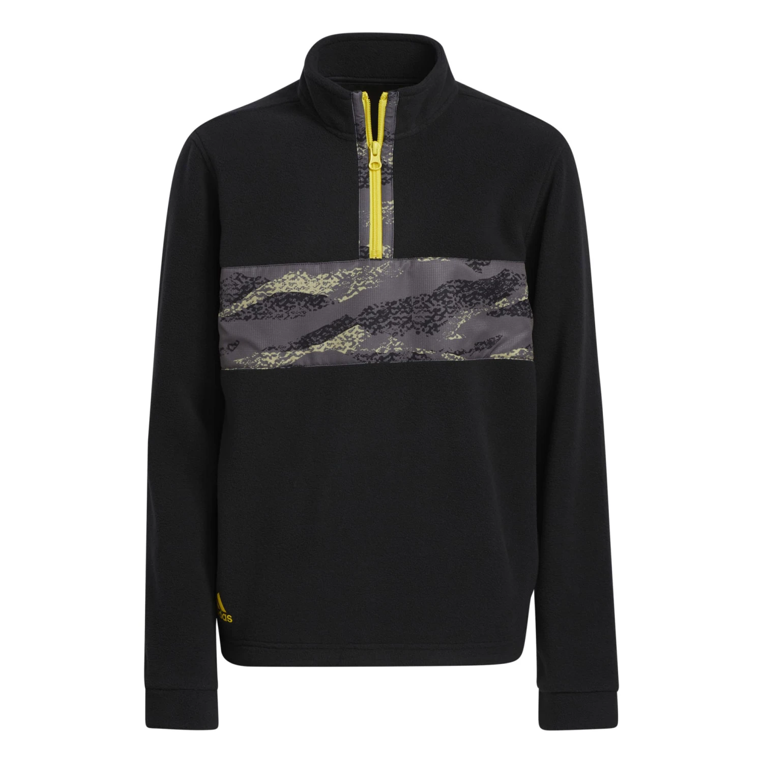 adidas Junior PrintBlock Golf Pullover The Junior PrintBlock Golf Pullover has been designed by adidas to provide junior golfers with a warm golf layer that is perfect for playing golf during the colder winter months. This junior golf pullover has been designed using polyester fleece that offers amazing comfort out on the golf course while also ensuring junior golfers are able to remain warmer for longer. The fleecing allows for the body heat that is created while walking a golf course to be retained for longer so that younger players can stay warm while walking a course during a winter day.& Features Regular fit Half zip with high stand-up collar Body: 100% recycled polyester fleece Front body insert: 100% recycled polyester ripstop Cuffed sleeves Elastic hem &