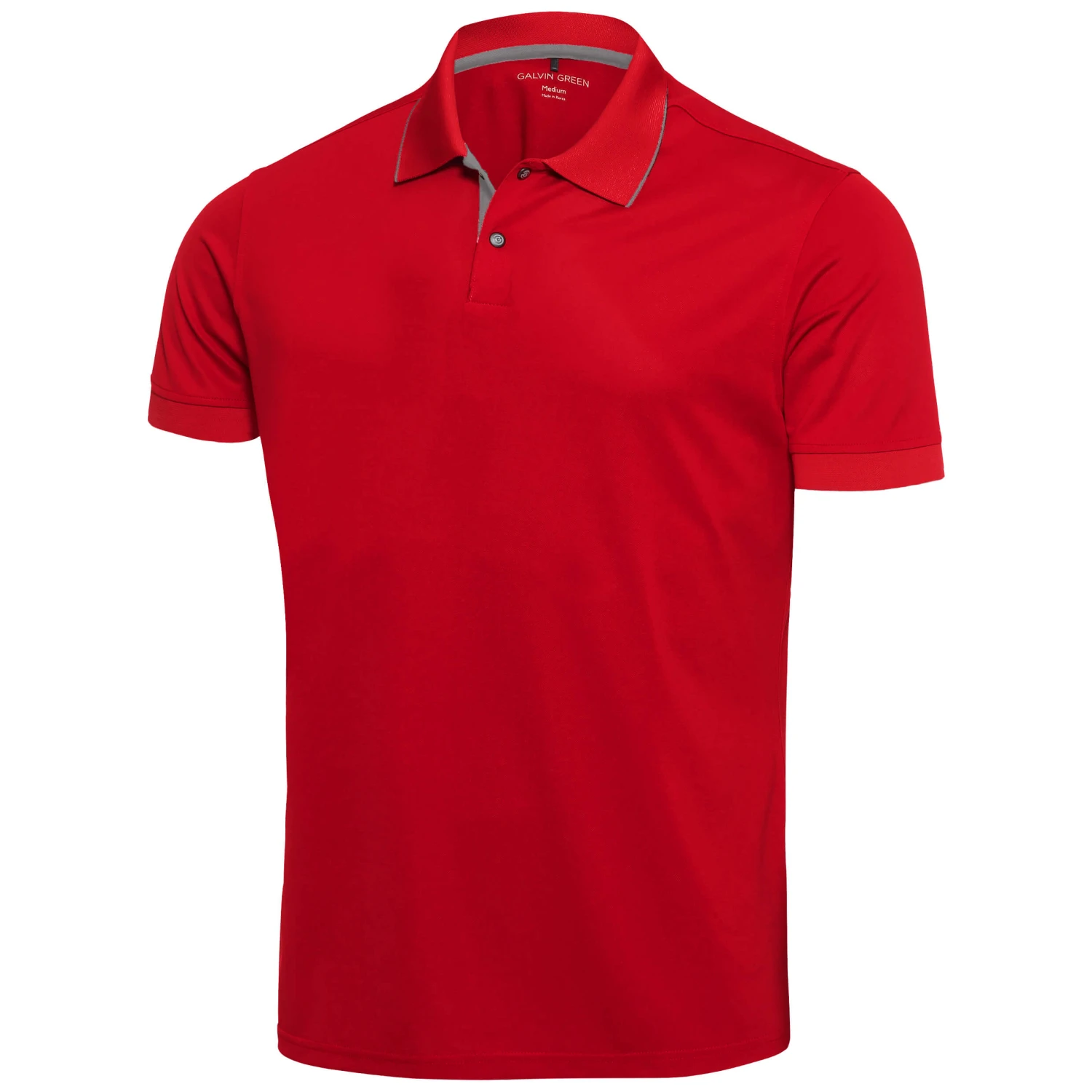 Galvin Green Rod Junior Golf Shirt -&Red Featuring the VENTIL8™ PLUS technology, the Rod junior shirt transports moisture and excess heat away twice as quickly as a conventional polyester golf shirt. Extremely high level of breathability. Excellent moisture-transportation properties keep the body dry and cool. Light, soft and comfortable garment, specially developed for golfers. Easy to wash and maintain, just regular machine wash.